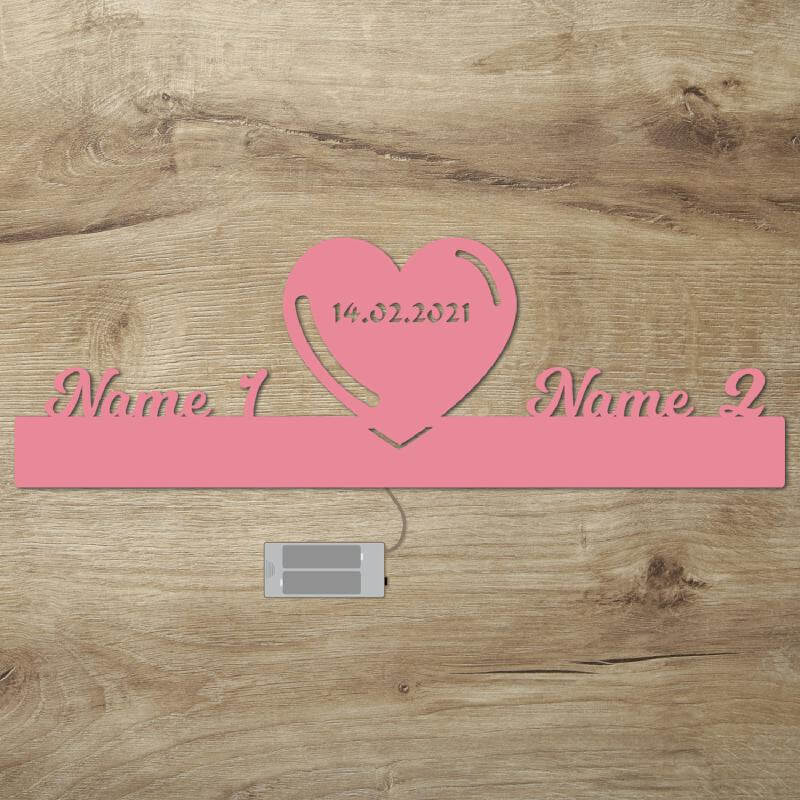 Ambiente Deko Licht Herz mit Namen für Paare personalisiert