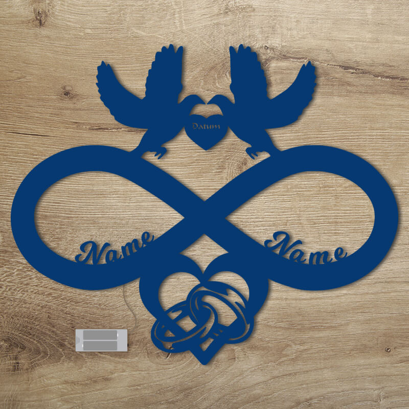 - Personalisierte Unendlichkeit Tauben Ambienteleuchte Nachtlampe I Gestaltung mit euren Namen und Wunschdatum Hochzeitsdatum Jahrestag
