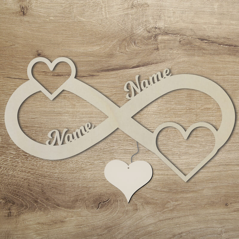 Unsere Hochzeitsgeschenke mit -Beleuchtung hüllen jeden Raum in ein romantisches Licht - genau das Richtige also für zwei Menschen, die bis über beide Ohren verliebt sind. Die Beleuchtung ist indirekt angebracht, sodass das Infinity Motiv am Abend spektakulär hinterleuchtet wird. Das Unendlichkeitszeichen steht symbolisch für die ewige Liebe der beiden frisch Vermählten. Die elegant geschwungenen Namen und zwei Herzen runden dieses ausgefallene Hochzeitsgeschenk ab.
