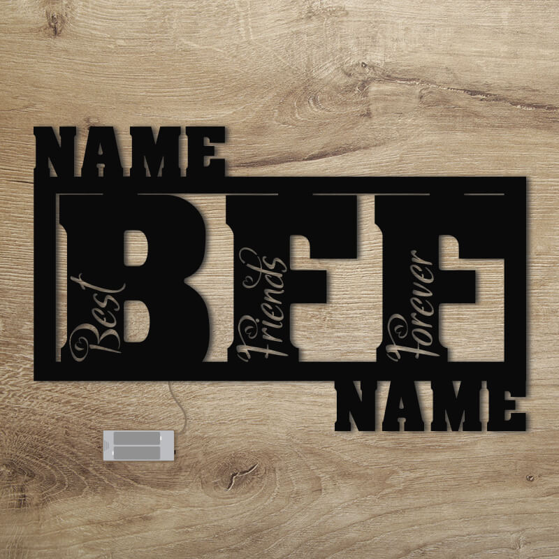 Holz LED Lampe Nachtlicht BFF Best Friends mit Namen individuell personalisiert
