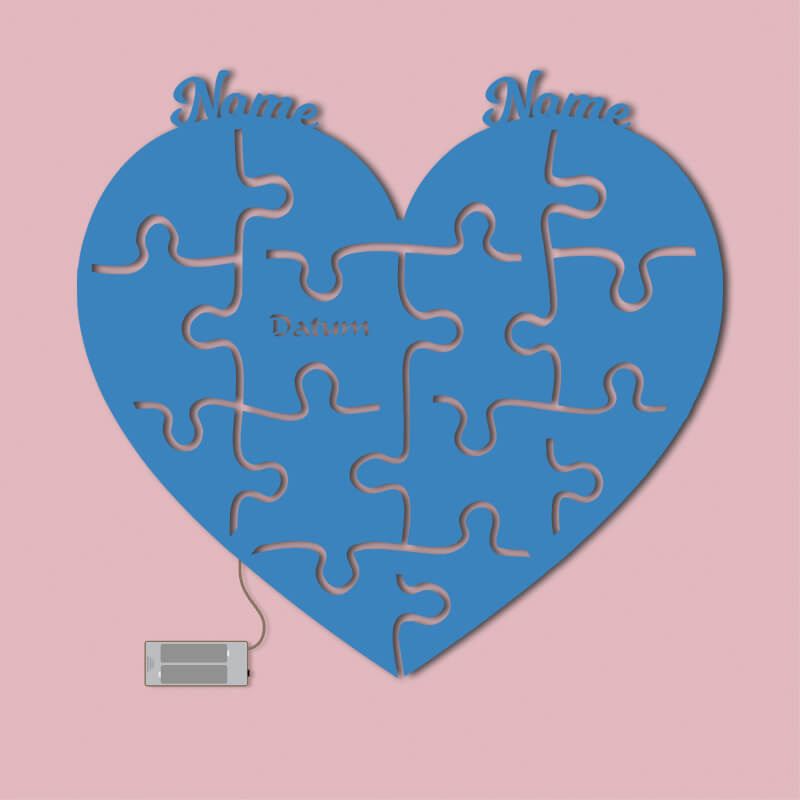 Deine Tochter oder Dein Sohn heiratet, ein Paar aus Deinem Freundeskreis schließt den Bund fürs Leben: Jetzt brauchst Du eine tolle Geschenkidee! Wie sehen passende Geschenke zur Hochzeit aus? Mit einer Geschenkidee, die die Liebe in den Mittelpunkt stellen, liegst Du richtig! Unser Holzherz zeigt, wie sich zwei Menschen perfekt ergänzen. Es ist ein romantischer Blickfang in der Wohnung des Paares, umso mehr, als es auch eine zauberhafte Deko-Leuchte ist. Das Motiv ist von einem Puzzle inspiriert - und das Beste daran: Du kannst das Holzherz individuell gestalten lassen. Wir ergänzen das Herz mit den Namen des Brautpaars und mit dem Hochzeitsdatum.