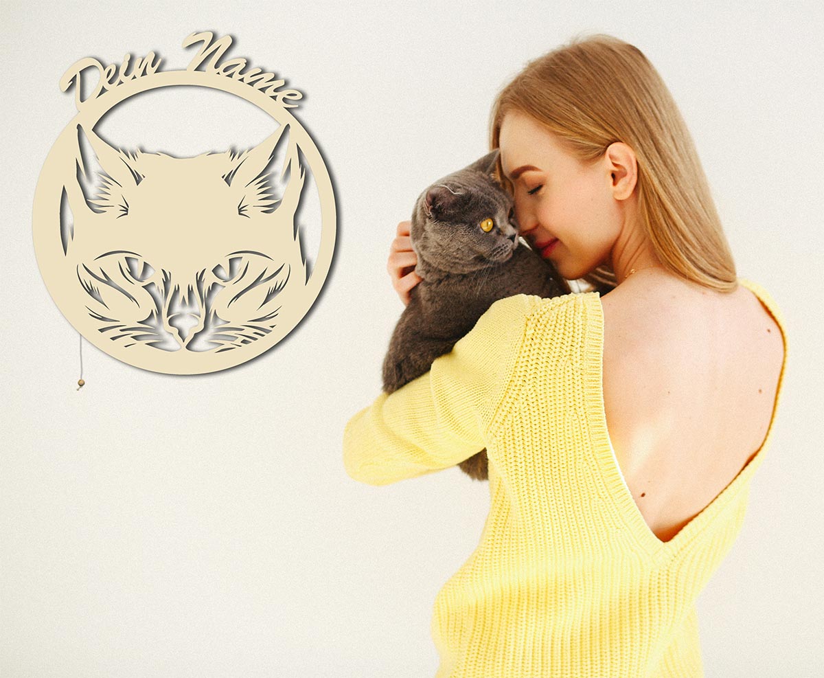 Du bist auf der Suche nach einer besonderen Geschenkidee mit Katzenmotiv? Hier gibt es die verschiedensten Kombinationen unserer Leuchte im Katzen Motiv aus hochwertzigen Pappelsperrholz.