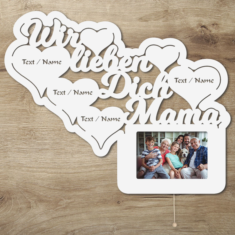 LED Wir lieben Dich Mama Bilderrahmen mit Personalisierung