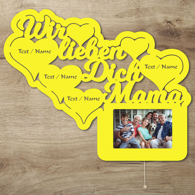 LED Wir lieben Dich Mama Bilderrahmen mit Personalisierung
