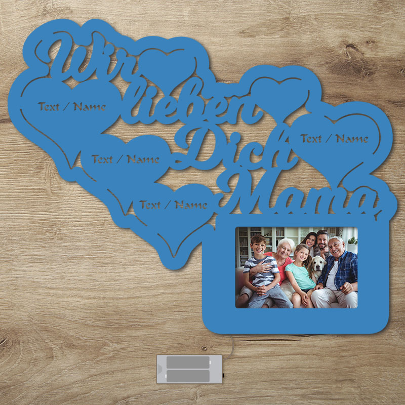 LED Wir lieben Dich Mama Bilderrahmen mit Personalisierung