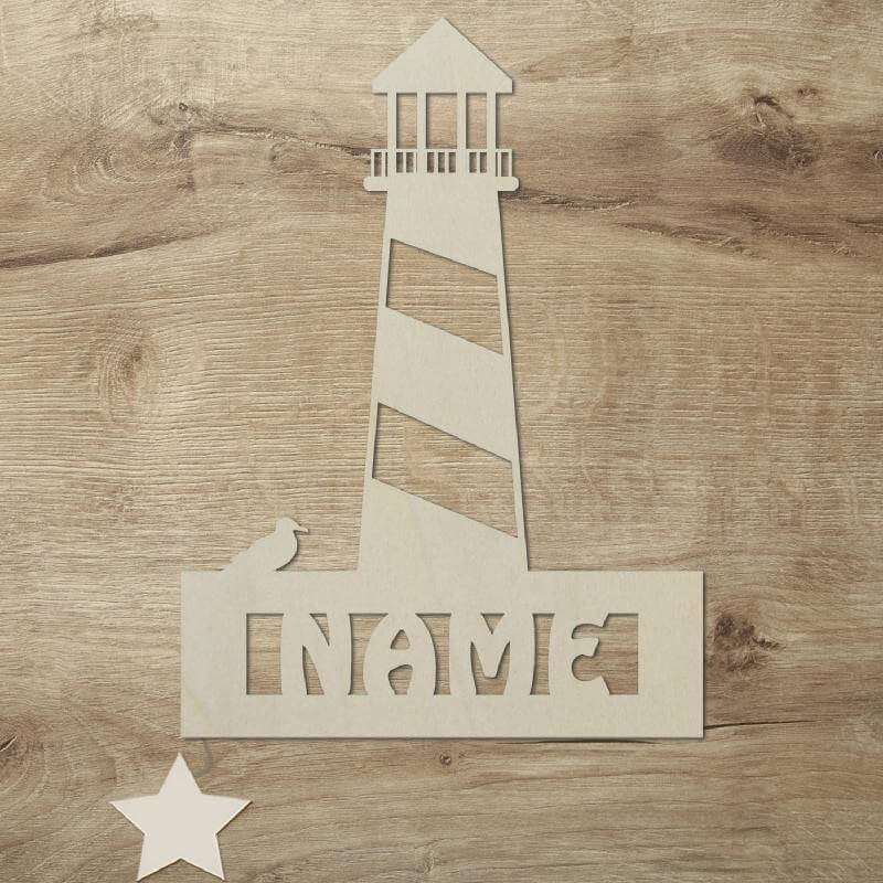 Leuchtturm LED Wand Lampe mit Namen Individuell angefertigt aus Pappelsperrholz ✓ Sicherer... mehr
