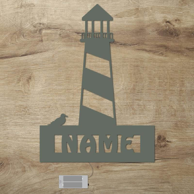 Leuchtturm LED Wand Lampe mit Namen Individuell angefertigt aus Pappelsperrholz ✓ Sicherer... mehr