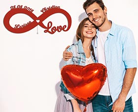 Das hochwertige Unendlichkeitszeichen Hochzeit wird aus Holz in Hessen gefertigt. Jede Infinity-Leuchte ist ein Unikat und damit ein einzigartiges Liebesgeschenk. Personalisiert wird die Infinity-Lampe mit zwei Namen und einem Wunschdatum, zum Beispiel Eurer Hochzeit oder dem ersten Date. Besonders hübsch ist der Schriftzug "Love" und der funkelnde Sterneffekt in der Mitte des Herzens.