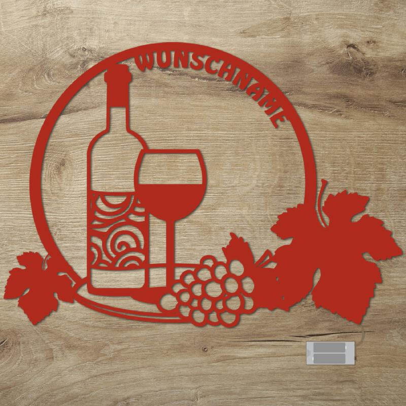 Wein Holz Deko Wand-Lampe personalisiert mit Name